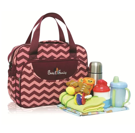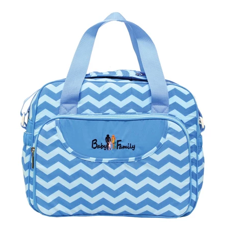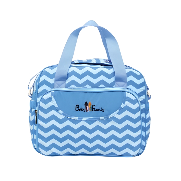 Pada bagian depan tas, terdapat kantung yang dapat disisipkan untuk menaruh saputangan bayi, tissue basah atau yang lainnya